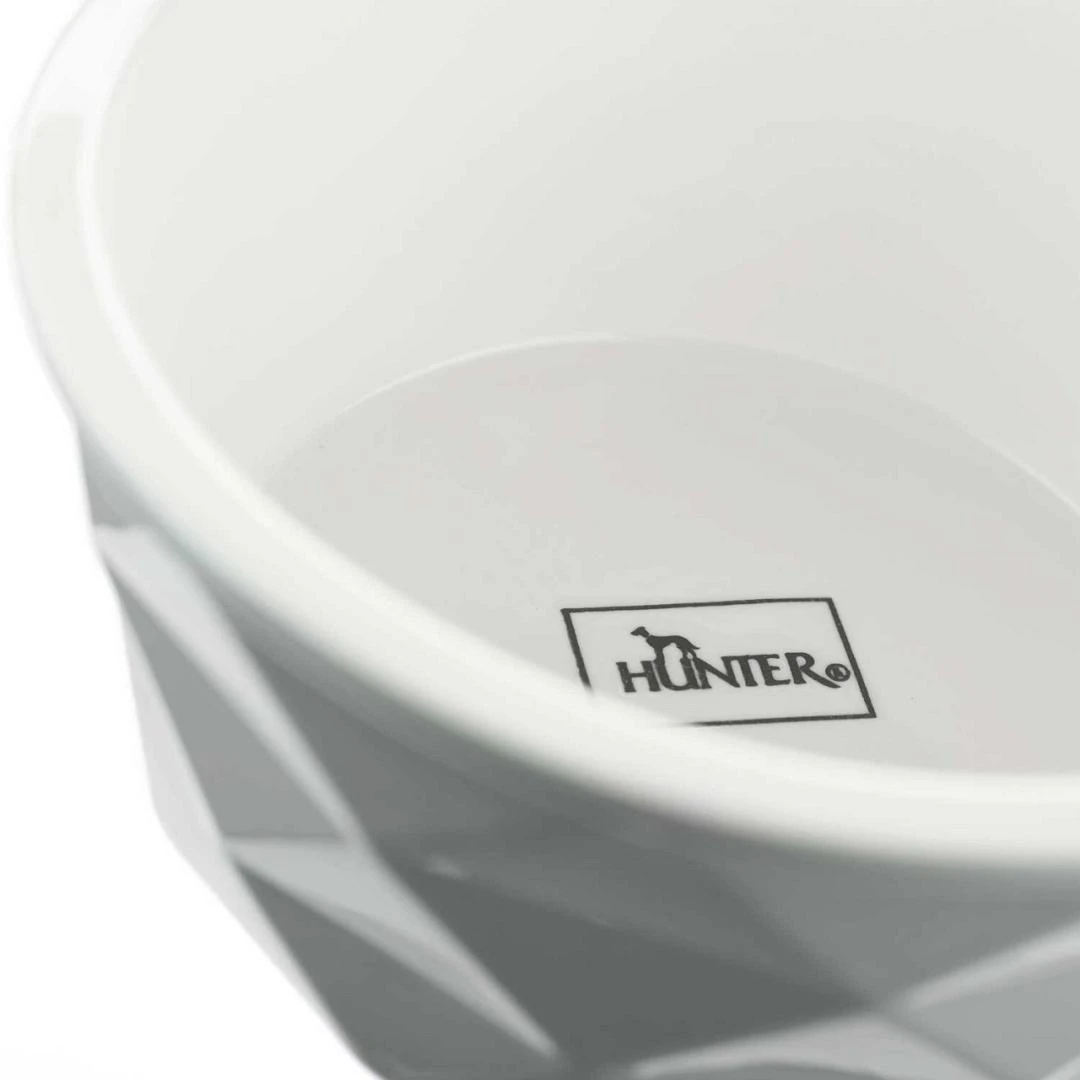 Hunter Voerbak Eiby is een stijlvolle, keramische voerbak met een diamant-look design, welke de schaal tot een echte eyecatcher maakt. Dankzij de omringende siliconen rand en het hoge gewicht is de kom bijzonder veilig en voorkomt hij krassen op het oppervlak.
